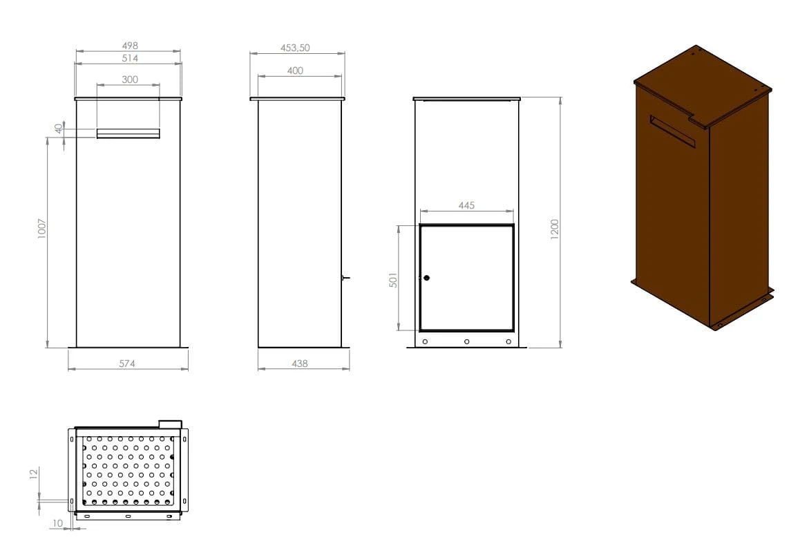 | Farbe | Die Farbe des verwendeten Werkstoffes Cortenstahl variiert bei Anlieferung zwischen blank und rot-orange-braun. Nach Abschluss des Rostprozesses wird der Briefkasten das typische warme rost-orange-braun erreicht haben.* |