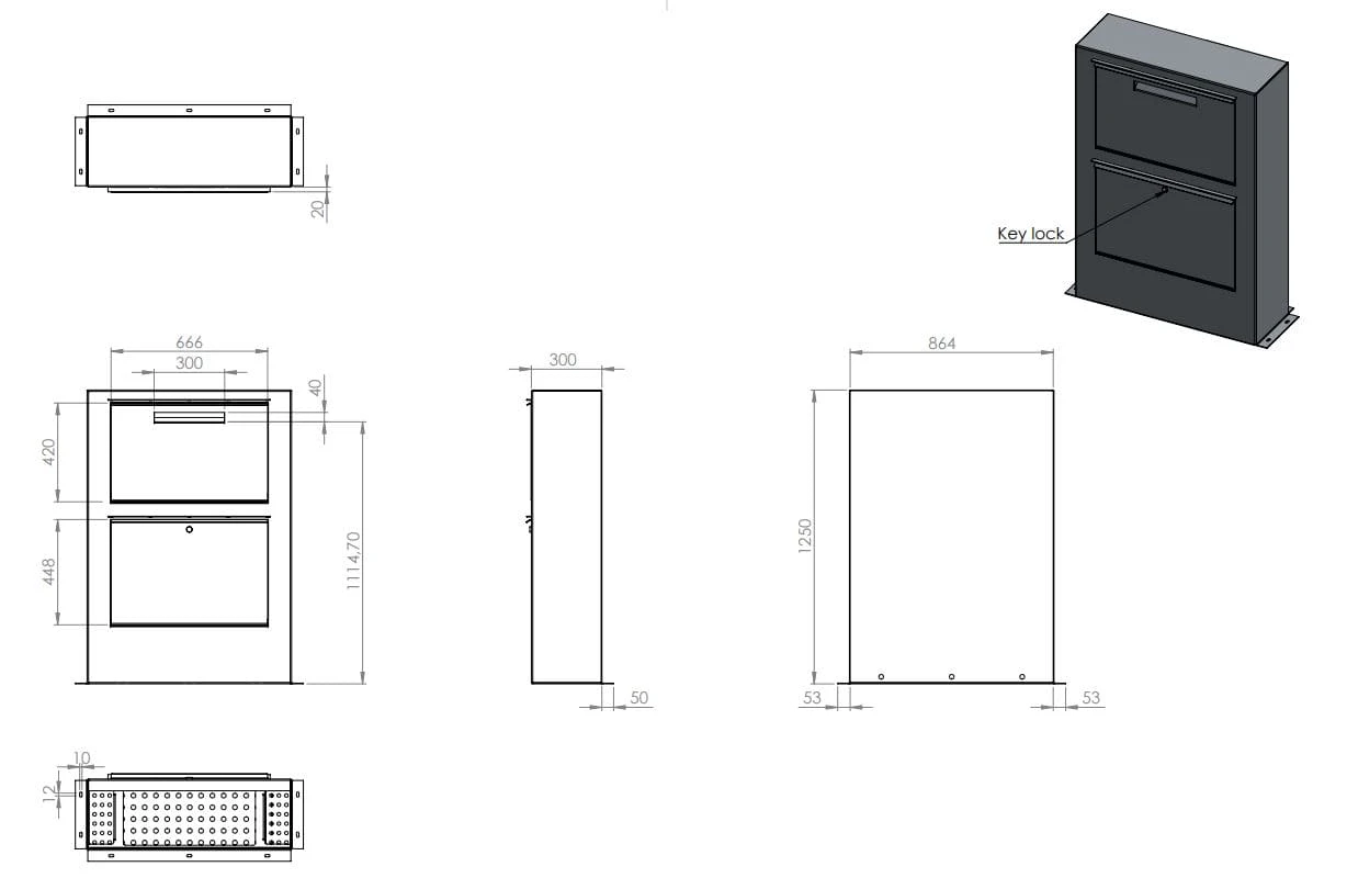 Der Briefkasten Paca der Premium-Marke ADEZZ überzeugt auf ganzer Linie mit seinen großzügigen Abmessungen und seinem zeitlosen, geradlinigen Design mit frontalem Brief- und Paketeinwurf. Die markante, schnörkellose Formgebung des Paketbriefkastens wird optisch auf höchst elegante Weise von der in weiß (RAL Farbton 9016) pulverlackierten Oberfläche gekonnt unterstrichen. Mit einer Materialstärke von mindestens 2 mm und aufwendig von Hand gefertigt ist dieser Standbriefkasten ein äußerst stabiler und langlebiger Begleiter. Der Einwurf der Briefpost erfolgt in den frontalen Briefschlitz. Dieser wurde auf der Unterseite nach oben umgekantet, um das Eindringen von Wasser bei Regen zuverlässig zu vermeiden. Die ebenfalls frontal eingeworfenen Pakete geraten durch eine Klappe in das untere, verschlossene Segment. Somit sind die hineingegebenen Packstücke sicher verwahrt und vor Diebstahl geschützt. Die Entnahme erfolgt bequem über die auf der Rückseite befindliche, großzügige, abschließbare Tür. Die Lieferung erfolgt inklusive 2 Schlüssel.