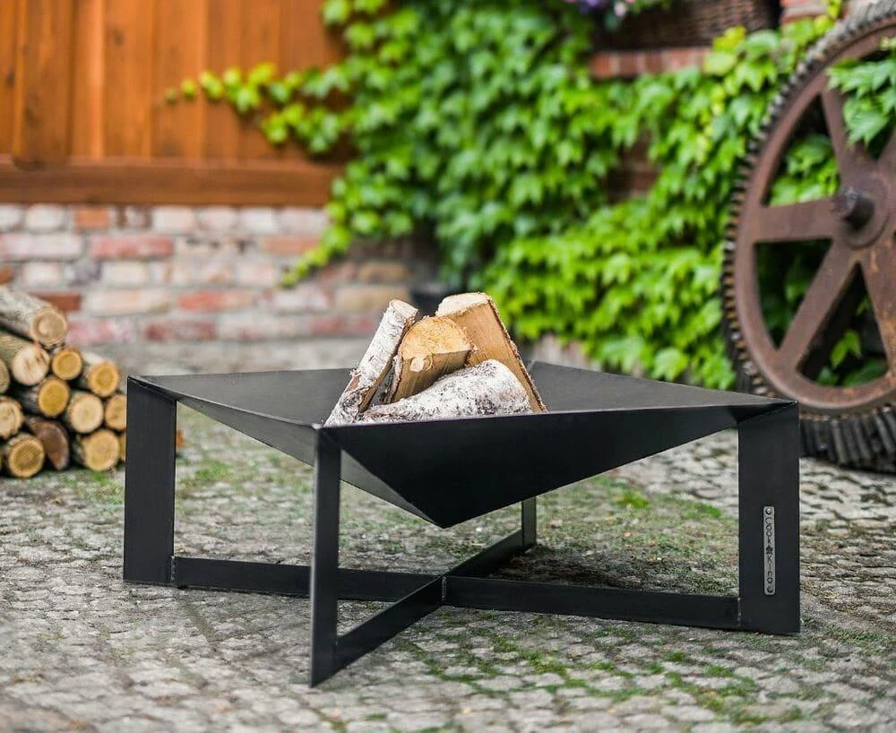 Die handgearbeiteten Feuerschalen von CookKing sind genau die richtigen Feuerstellen für stimmungsvolle Abende im Garten oder auf der Terrasse. Sie dienen als Wärmequelle und, ergänzt mit dem passenden Zubehör, als Grillstelle sowie gleichermaßen als flammender Blickfang in Ihrem Freizeitrefugium. Aus hochwertigem, langlebigem 2mm starkem Rohstahl von Hand gefertigt und mit stimmigem Design und liebevollen Details wie dem genieteten Label lassen sie das Herz eines jeden höher schlagen, der das Flair und Ambiente eines offenen Holzfeuers liebt. Die Feuerschale Cuba mit ihrer quadratischen Grundfläche und der ausdrucksstarken, kantigen Formgebung steht stabil und sicher auf dem kreuzförmigen Gestell, welches dafür sorgt, dass der Boden unter der Feuerschale unversehrt bleibt und somit die Natur geschont wird. Besonders empfehlenswert ist die Kombination der Feuerschale mit Deckel. Diese sinnvolle Ergänzung verhindert zuverlässig das Herauswehen von Asche.