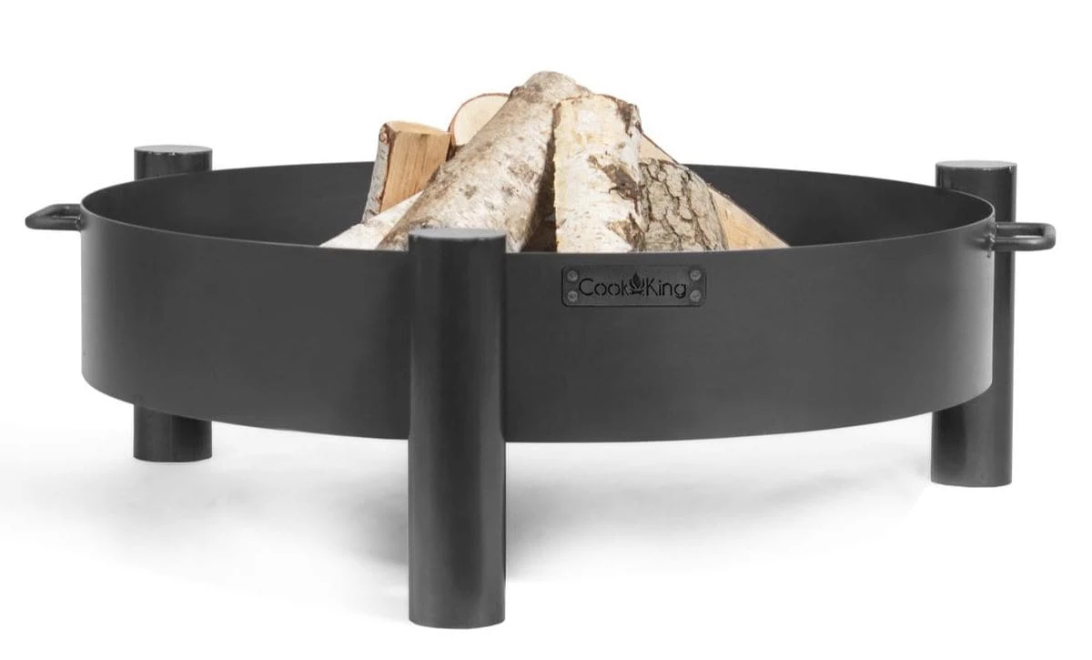 Die handgearbeiteten Feuerschalen von CookKing sind genau die richtigen Feuerstellen für stimmungsvolle Abende im Garten oder auf der Terrasse. Sie dienen als Wärmequelle und, ergänzt mit dem passenden Zubehör, als Grillstelle sowie gleichermaßen als flammender Blickfang in Ihrem Freizeitrefugium. Aus hochwertigem, langlebigem 2mm starkem Rohstahl von Hand gefertigt und mit stimmigem Design und liebevollen Details wie dem genieteten Label lassen sie das Herz eines jeden höher schlagen, der das Flair und Ambiente eines offenen Holzfeuers liebt. Die Feuerschale Haiti steht stabil und sicher auf 3 niedrigen, formschönen Füßen, welche auch dafür sorgen, dass der Boden unter der Feuerschale unversehrt bleibt und somit die Natur geschont wird. Die 2 praktischen Griffe ermöglichen ein müheloses Tragen und Platzieren der Feuerschale. Besonders empfehlenswert ist die Kombination der Feuerschale mit Deckel oder Funkenschutzdeckel. Diese sinnvollen Ergänzungen verhindern zuverlässig das Herauswehen von Asche bzw. bestehender Glut.