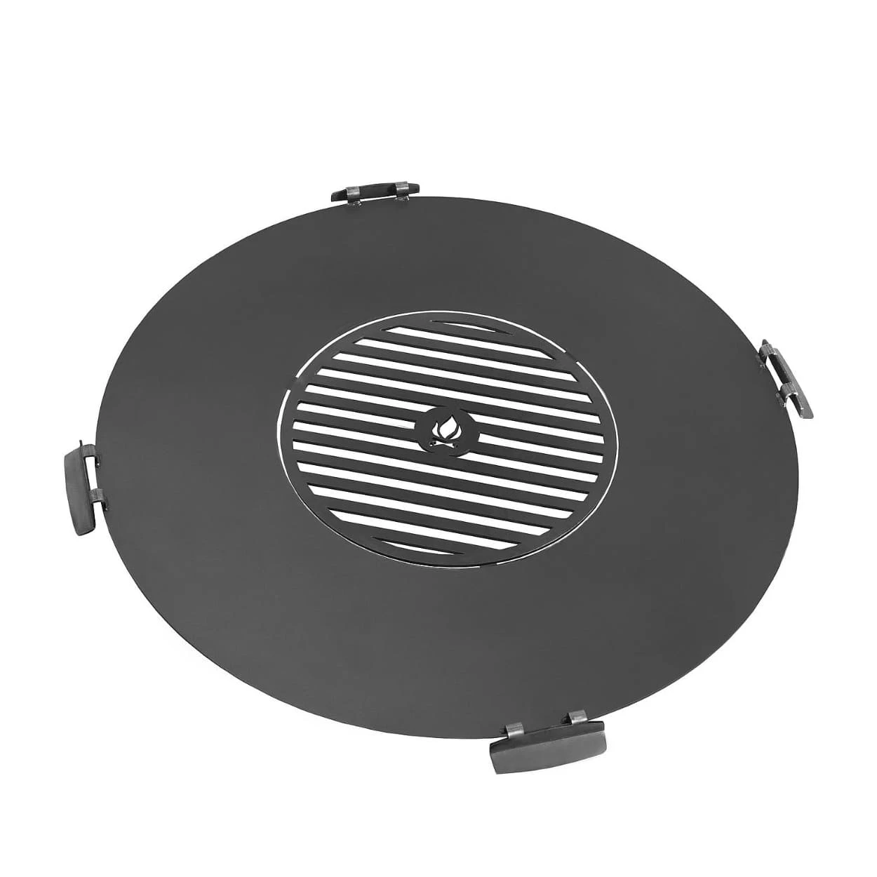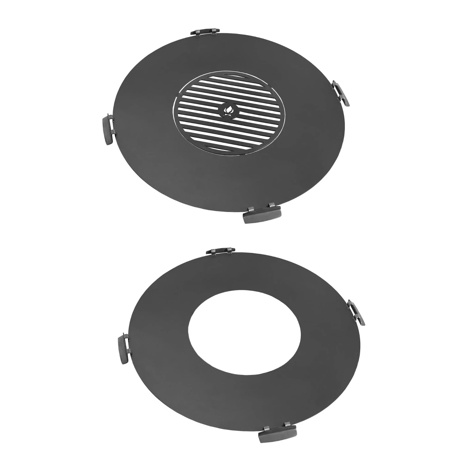 Die runde Grillplatte von CookKing ist ideal geeignet um aus Ihrem Gartenfeuer im Handumdrehen einen Grill zu zaubern, auf dem Sie in stimmungsvoller Atmosphäre die unterschiedlichsten Köstlichkeiten zubereiten können. Die solide Konstruktion aus 3 mm starkem Rohstahl wird vom Hersteller sorgfältig und von Hand gefertigt. In der Mitte der Platte befindet sich ein Loch, welches eine ausreichende Luftzufuhr für das Feuer sicherstellt. Damit ergibt sich ein umlaufender Zubereitungsbereich mit großzügigen 21 bzw. 26 cm Breite. Die 4 praktischen Griffe erleichtern das Tragen und Platzieren. Die Grillplatte lässt sich ideal mit den runden Feuerschalen der Marke CookKing sowie auch mit den meisten anderen handelsüblichen Feuerschalen und Feuertonnen kombinieren. Die ideal passende Größe der Feuerplatte für Ihre CookKing Feuerschale lässt sich der Abbildung entnehmen.