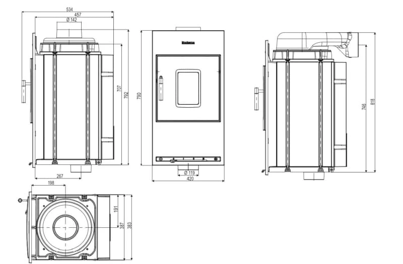 Die Serie Logaflame des traditionsreichen deutschen Unternehmens Buderus bietet ein enormes Spektrum an Kachelofeneinsätzen sowohl für den Ofenneubau als auch für den Austausch alter Geräte beinahe aller bekannten Kachelofeneinsatz-Fabrikate. Die Kachelofeneinsätze werden in Deutschland hergestellt, weisen die gewohnt langlebige Buderus-Qualität auf und befinden sich auf dem neuesten Standard hinsichtlich Brennverhalten und Energieeffizienz. Bei dem Kachelofeneinsatz HLG326 handelt sich um ein Produkt für den Betrieb in bestehenden sowie neu errichteten Warmluftkachelöfen mit Nachheizflächen oder Nachheizkästen, für Kachelöfen über 2 Geschosse und Hypokaustenanlagen. Ein Highlight des Logaflame HLG326 ist seine Vielseitigkeit, denn das Erscheinungsbild seiner Front kann individuell konfiguriert werden; entweder, für einen ungehinderten Blick auf das in seinem Inneren prasselnde Feuer, mit großer Scheibe, oder, für einen reduzierten Wärmeverlust über die Scheibe, mit kleinem Sichtfenster.