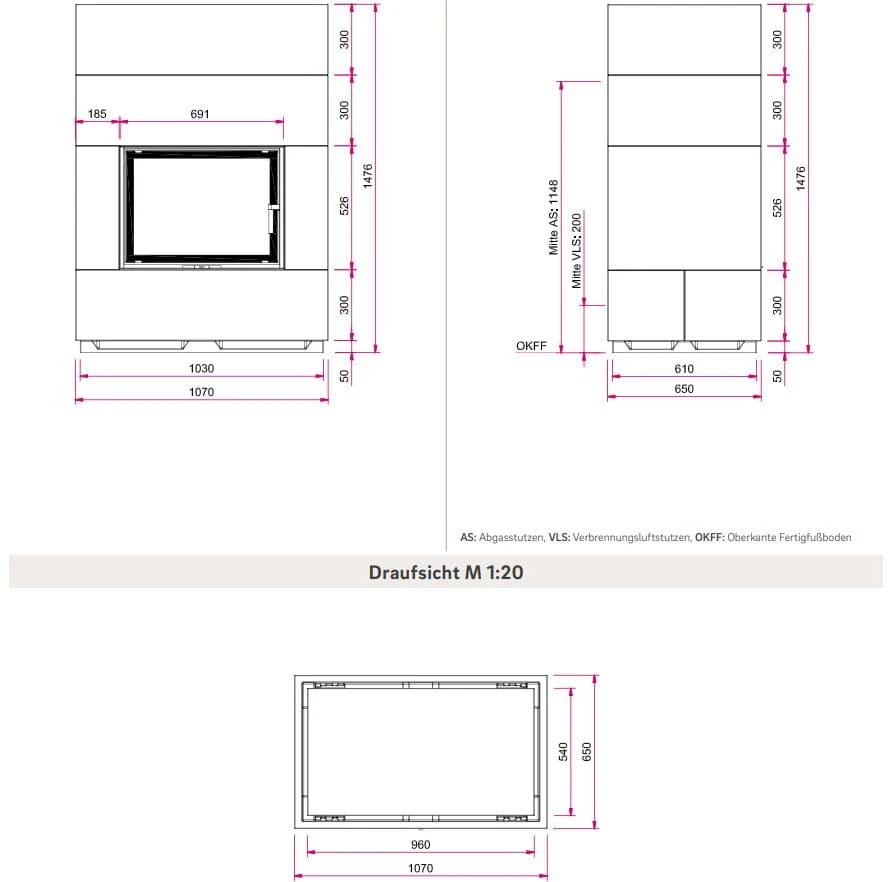 Datenblatt mit Kamineinsatz mit 67 cm Türbreite