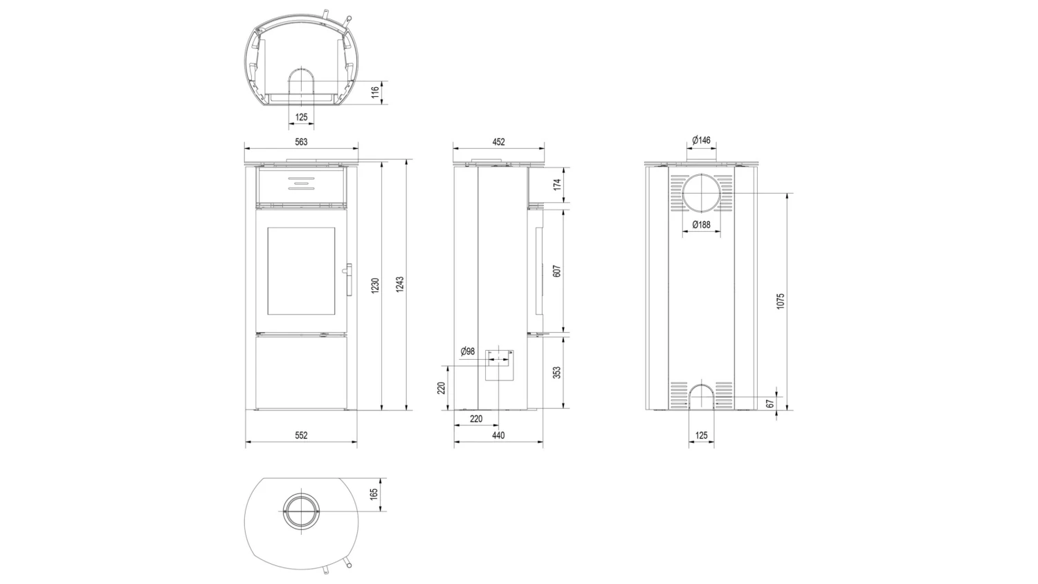 Das Fach unter dem Feuerraum, in welchem sich auch die Vorrichtung für den externen Frischluftanschluss diskret verbirgt, kann auch für die Aufbewahrung eines kleinen Holzvorrates zum Einsatz kommen. Für einen leichten Zugang ist es mit einem modernen Push-to-open-Mechanismus versehen.