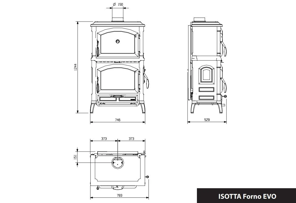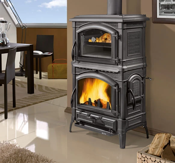 Der Gussofen Isotta Forno Evo des italienischen Traditionsunternehmens LA NORDICA bietet mit seiner nostalgischen Optik Wärmegenuss im Landhaus Stil in Verbindung mit moderner, effizienter Feuerungstechnik und dem speziell entwickelten Post Combustion System, welches dank eines Zweit-/ Drittluftsystems eine Nachverbrennung ermöglicht, was die schädlichen Emissionen signifikant reduziert. Das besondere Plus des Isotta Forno Evo ist das Backfach über dem Feuerraum mit in die Tür integriertem Thermometer. Hier können die leckersten Gratins, Aufläufe oder Soufflés entstehen, während Sie die wohlige Wärme des Kaminfeuers genießen. Der Isotta Forno Evo ist, einschließlich seines Feuerraumes, komplett aus langlebigem und massivem Guss gefertigt. Die Oberfläche ist hochwertig emailliert. Seine besondere Optik wird ihm durch liebevolle Details wie den geschwungenen Standfüßen, den feinen Konturen sowie der nach obenhin abgerundeten Sichtscheibe verliehen. Dies macht den Schwedenofen zu einem Blickfang in jedem Ambiente von klassisch bis modern. Die Brennkammer des Isotta Forno Evo kann ganz praktisch entweder von vorne oder durch eine zusätzliche seitliche Tür sauber und sicher befüllt werden.