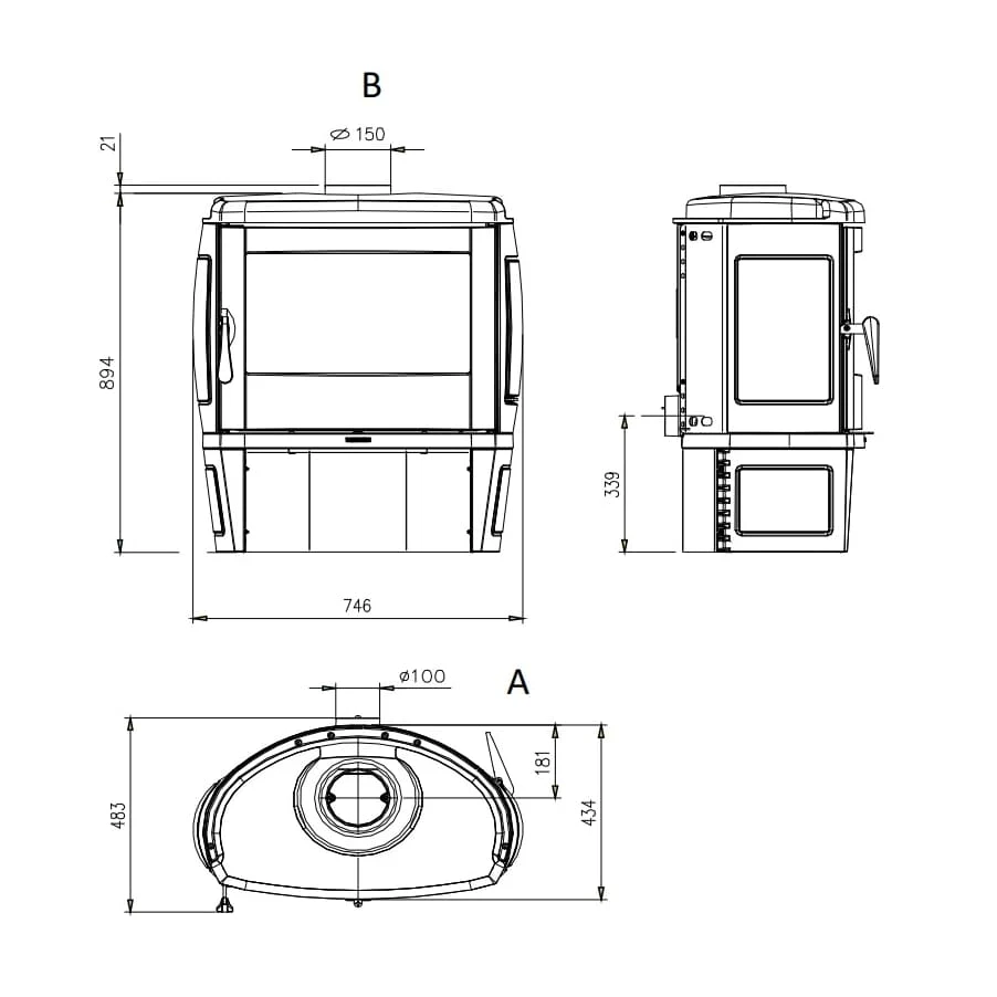 Der Rauchrohranschluss des Kaminofens befindet sich oben.