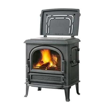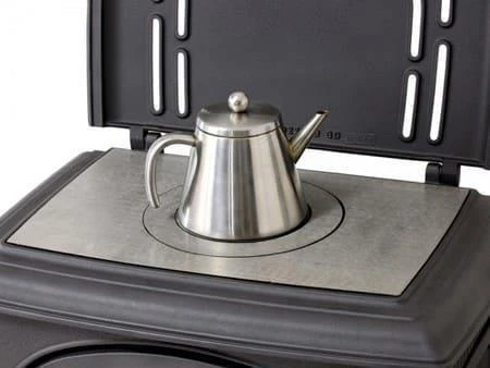 Der Gussofen ANTIGUA K des deutschen Traditionsunternehmens LEDA mit seiner besonderen Formsprache inspiriert vom Art-déco-Stil bietet Wärmegenuss mit ursprünglichem Charakter in Verbindung mit aktuellster Feuerungstechnik. Der Clou bei diesem Kaminofen ist die integrierte Kochplatte, die den ANTIGUA K zu einem veritablen Küchenhelfer macht. Seine besondere Optik wird ihm durch Details wie den gebogenen Standfüßen, den dezenten Verzierungen und feinen Konturen sowie der nach obenhin abgerundeten Sichtscheibe verliehen und macht diesen Schwedenofen zu einem Blickfang in jedem Ambiente von klassisch bis modern. Die Brennkammer des ANTIGUA K kann entweder von vorne oder durch eine zusätzliche seitliche Tür sauber und sicher befüllt werden.