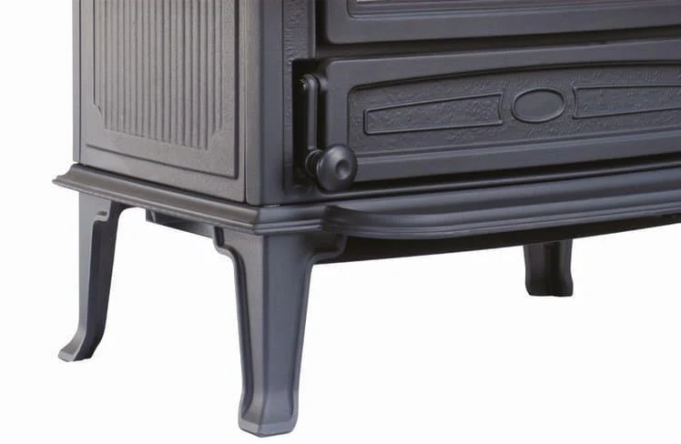 Der Gussofen ANTIGUA des deutschen Traditionsunternehmens LEDA mit seiner besonderen Formsprache inspiriert vom Art-déco-Stil bietet Wärmegenuss mit ursprünglichem Charakter in Verbindung mit aktuellster Feuerungstechnik. Seine besondere Optik wird ihm durch Details wie den gebogenen Standfüßen, den dezenten Verzierungen und feinen Konturen sowie der nach obenhin abgerundeten Sichtscheibe verliehen und macht diesen Schwedenofen zu einem Blickfang in jedem Ambiente von klassisch bis modern. Die Brennkammer des ANTIGUA kann entweder von vorne oder durch eine zusätzliche seitliche Tür sauber und sicher befüllt werden.