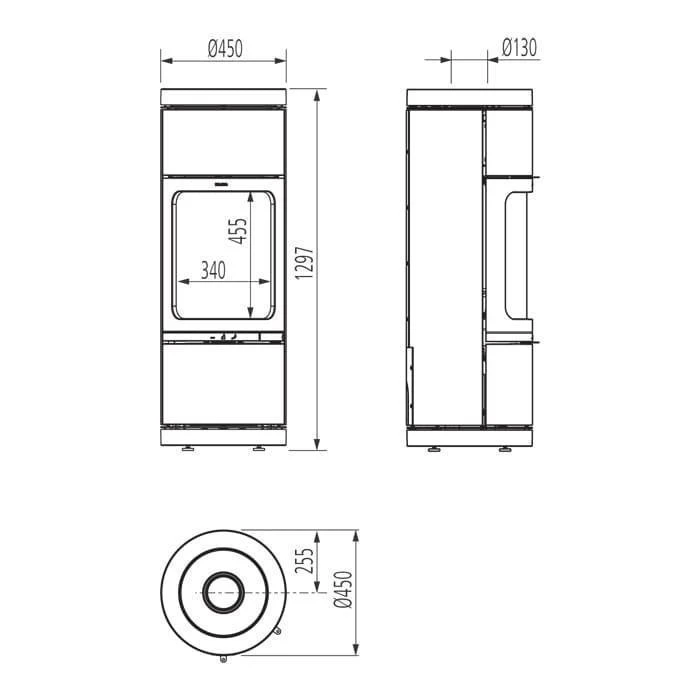 Der Rauchrohranschluss des schwarz lackierten Schwedenofens befindet sich oben.