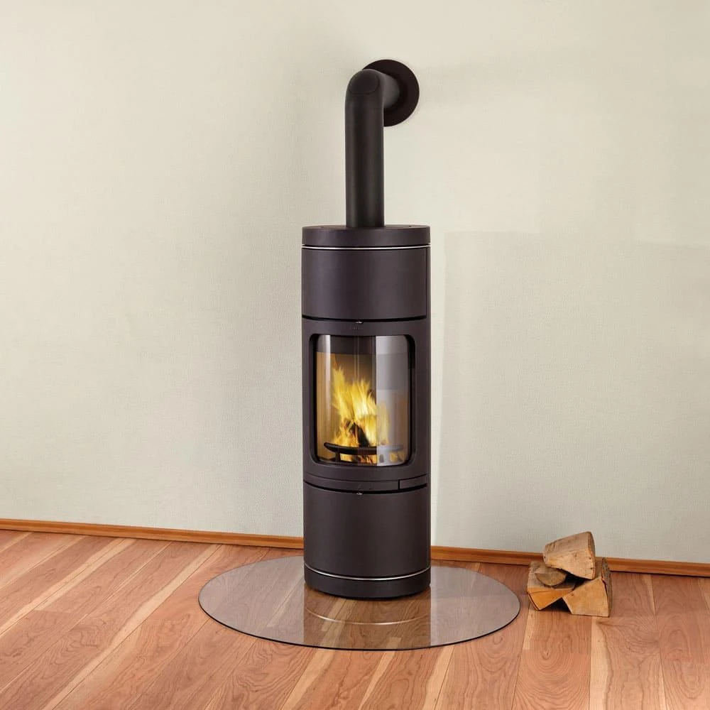 Bei den Gussöfen der Serie NOVIA des deutschen Traditionsunternehmens LEDA vereinen sich hochwertige Materialien und effiziente Feuerungstechnik mit dezentem, modernen Design. Grundsätzlich ist der NOVIA W mit einer integrierten Wassertasche ausgestattet. Durch den Anschluss dieser an das zentrale Heizsystem lassen sich so selbst weit entfernte Räume mit Ihrem Kaminofen beheizen. Das Wärmeabgabeverhältnis des Kaminofens beträgt 60 / 40, d.h. dass rund 60 % der durch den NOVIA W produzierten Wärme dem Wasserkreislauf und damit dem gesamten zu Objekt (Haus) zur Verfügung stehen. Der Rest wird als Strahlungswärme in den Aufstellraum abgegeben und erzeugt dort die typische wohlige Wärme, die nur ein Kaminofen erzeugen kann. Durch dieses Verhältnis wird das Risiko des Überheizens des Aufstellraumes deutlich reduziert und gleichzeitig die Energie optimal genutzt. Mit dem leicht bedienbaren Umlenkschieber lässt sich die Leistungsverteilung ganz einfach regulieren. Bei ausgezogenem Umlenkschieber strömen die die Heizgase in den Schornstein, was als Anheizhilfe die Inbetriebnahme erleichtert. Bei eingeschobenem Schieber strömen die Heizgase durch den Wasserwärmetauscher und erhitzen das Wasser, welches über den Pufferspeicher in die Heizungsanlage geleitet wird. Die Technik ist hervorragend für Gebäude mit Niedrigenergie-Standard geeignet und kann eine Solaranlage in der kalten Jahreszeit optimal ergänzen. Ein weiterer Vorteil dieses Schwedenofens ist seine Vielseitigkeit hinsichtlich der Brennstoffe, denn der NOVIA W ist zugelassen für Scheitholz sowie für Holz- und Braunkohlebriketts.