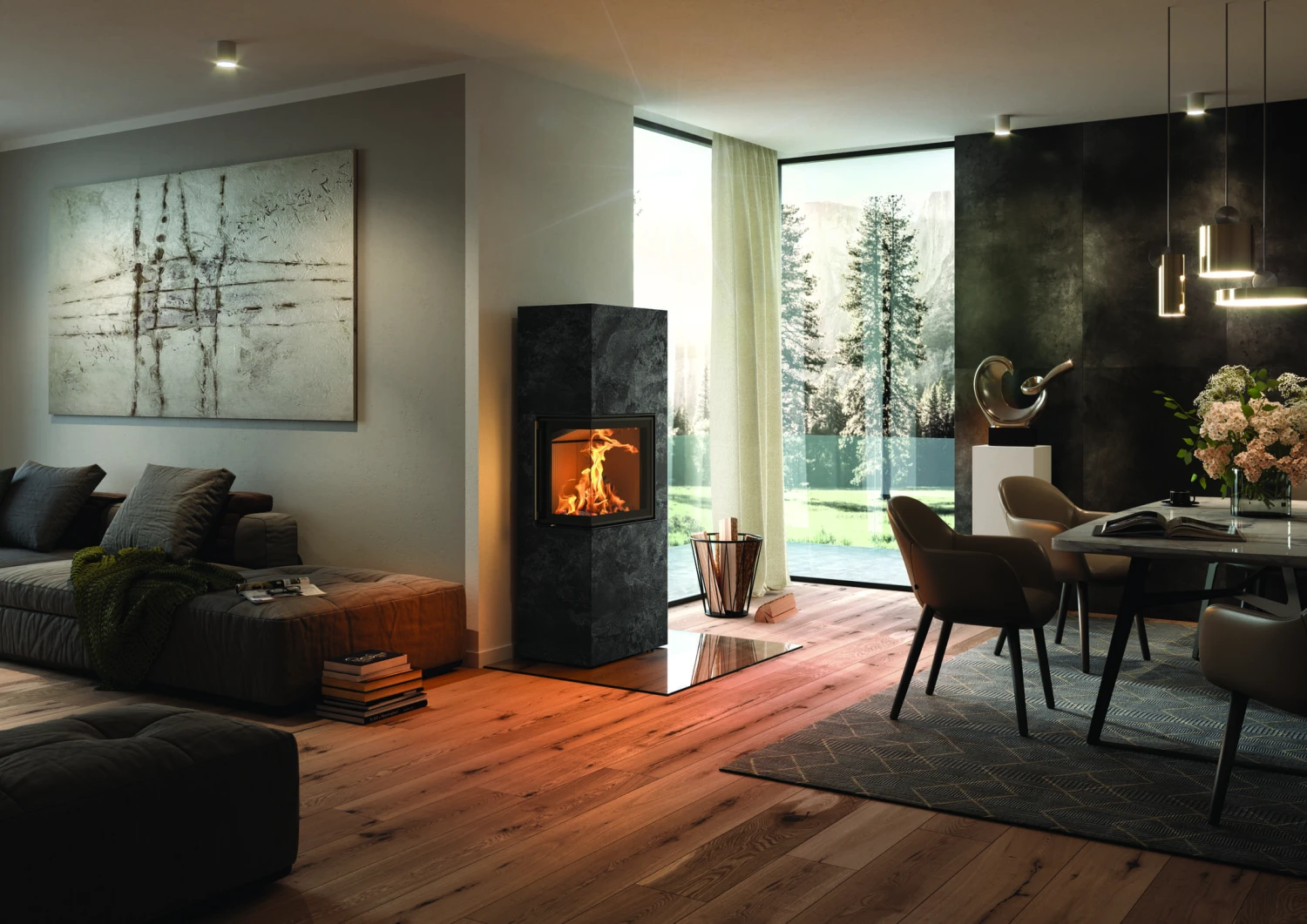Die Kaminofen Lungo des deutschen Premiumherstellers Spartherm im ultramodernen, fugenlosen Quader-Design ist mit seiner kantig-markanten Optik ein ausgesprochen imposantes Modell mit starkem Charakter. Mit seiner klappbaren Eckglastür lässt sich dieser Schwedenofen perfekt in eine Raumecke positionieren, aber auch direkt vor die Wand stellen, so dass Sie aus allen Blickwinkeln das beeindruckende Feuerspiel in seinem Inneren genießen können.