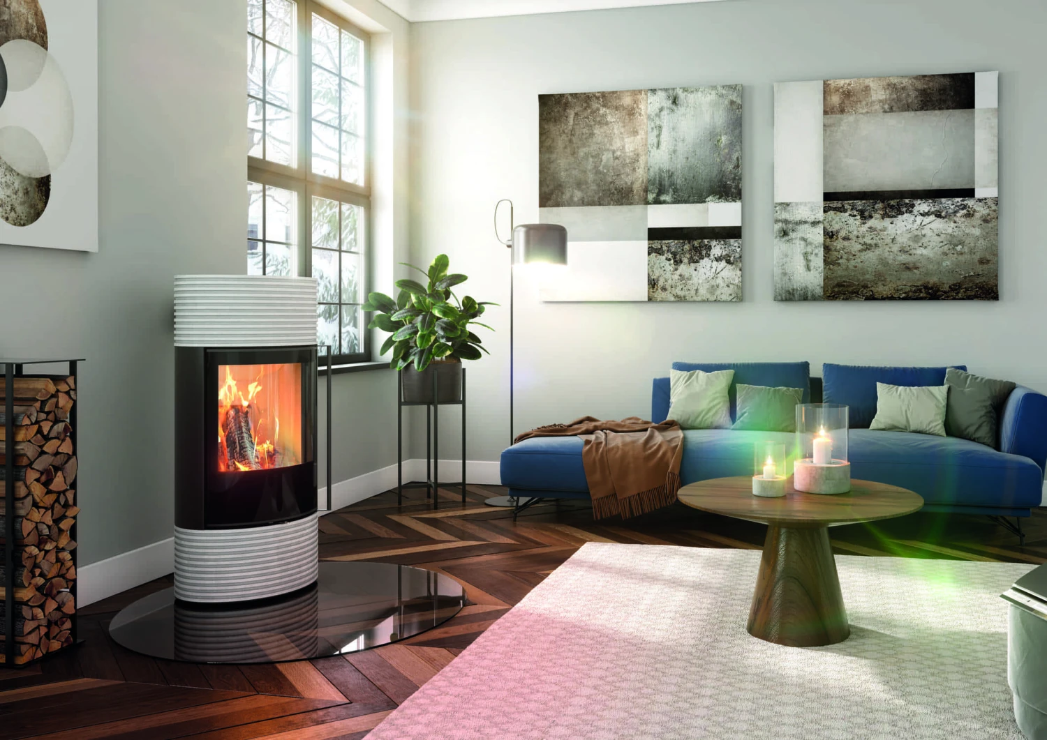 Die Kaminöfen der Serie Senso des deutschen Premiumherstellers Spartherm sind mit ihrem modernen, geradlinigen Design besonders vielseitig einsetzbar, da sie sich durch ihre schlichte, schnörkellöse Form und die vielen zur Verfügung stehenden Konfigurationsmöglichkeiten hervorragend in nahezu jeden Raum integrieren lassen. Der Senso L fashion überzeugt mit einer besonders langen Wärmedauer dank seitlichem Wärmespeicher aus topmodernem Beton mit elegant gerilltem Relief. Darin wird die Wärme des Feuers gespeichert und langsam und gleichmäßig an die Umgebung abgegeben. So wird auch über einen längeren Zeitraum ein angenehm-wohliges Raumklima geschaffen. Als Kontrast ist die Front und der Türbereich dieses besonderen Schwedenofens in elegantem Nero, einem tiefen, matten Schwarz, gekonnt akzentuiert gestaltet.