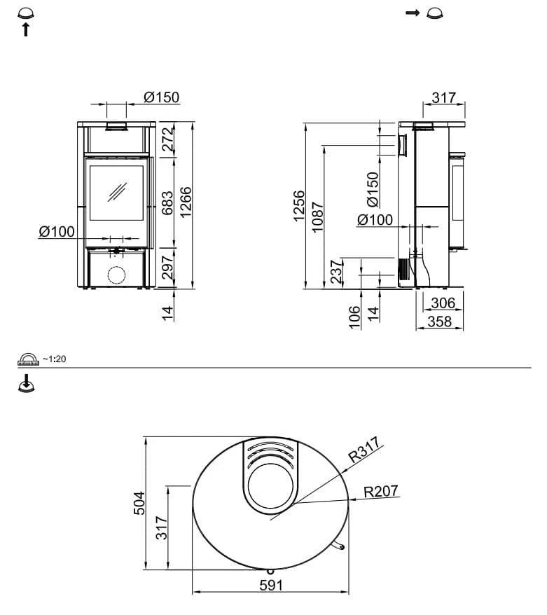 | Brennstoffe | Holz (bis 33 cm Scheitlänge) |