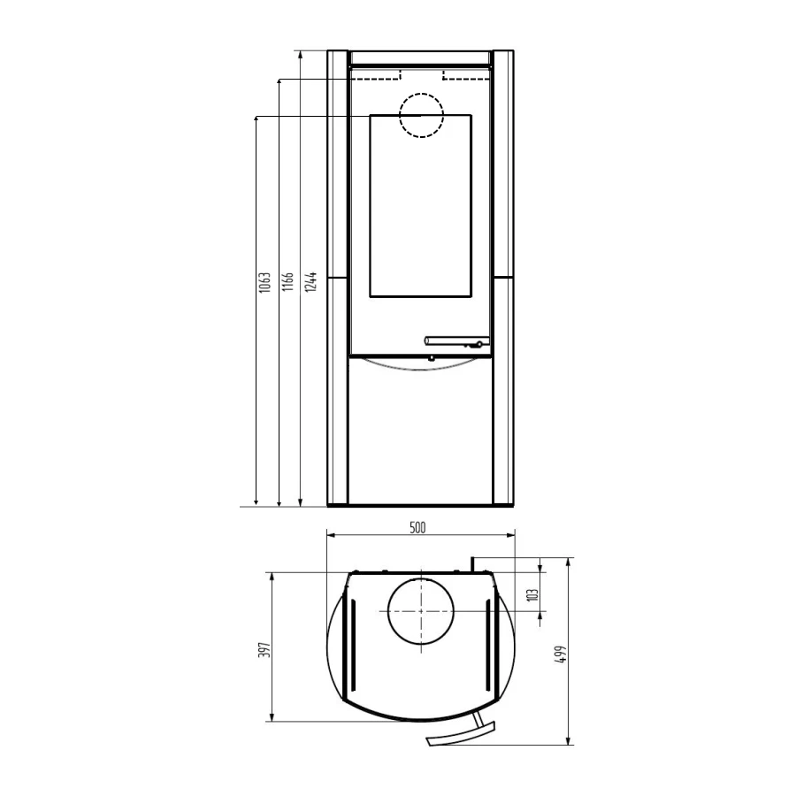 Alternativ ist der Myra auch als Ausführung mit grauer Stahlverkleidung und integriertem Holzfach bei Kaminprofi24 erhältlich.