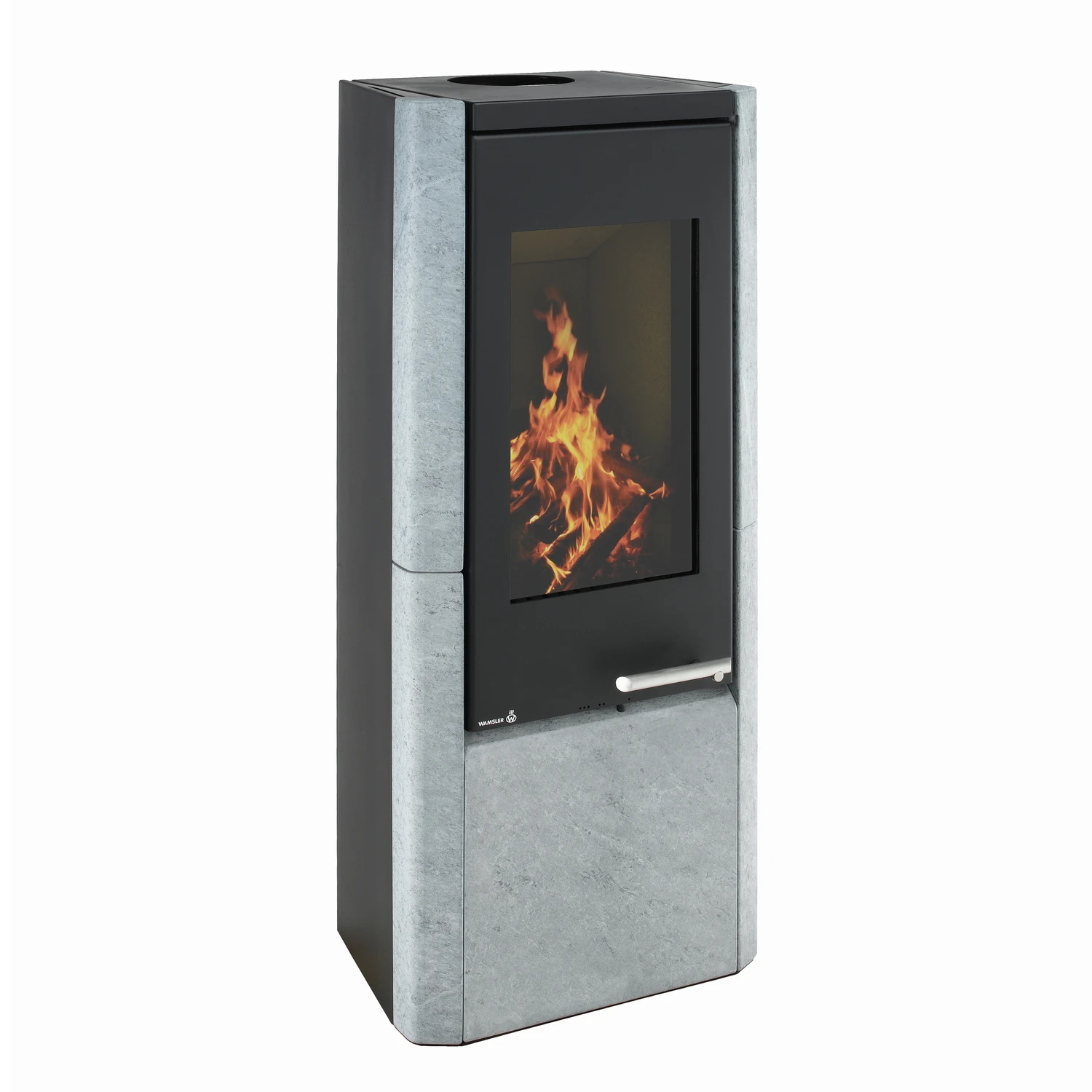 Der raumluftabhängige Schwedenofen ist mit zwei unterschiedlichen Seitenverkleidungen, wahlweise in Stahl Grau oder Naturstein, zur Auswahl bei Kaminprofi24 erhältlich.