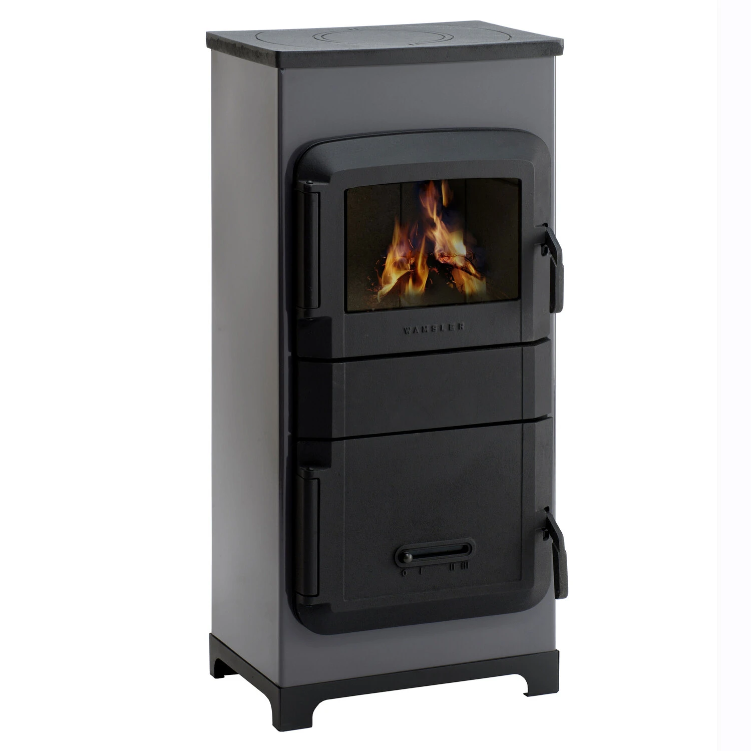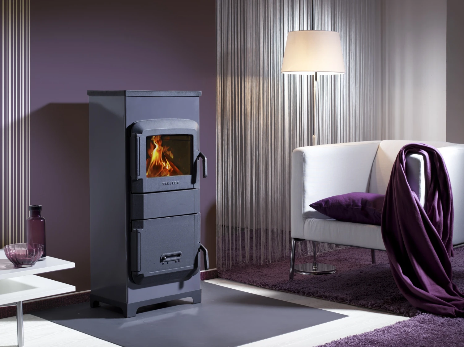 Der Kaminofen RH-8F des renommierten deutschen Markenherstellers WAMSLER überzeugt mit rustikalem Design und solider Bauweise mit Türen und Abdeckplatte aus massivem Gusseisen. Er ist ein attraktiver und beliebter Raumheizer und wird aufgrund seiner kompakten Abmessungen und geringen Anschaffungskosten sehr gern als Werkstattofen zum Einsatz gebracht. 8 kW Heizleistung und die nach Herdnorm DIN EN 12815 geprüfte Kochplatte macht ihn darüber hinaus zu einem vollwertigen Heiz- und Kochgerät, auch wenn einmal Strom und Zentralheizung ausfallen sollten. Charakteristisch für den RH-8F ist die Verkleidung aus Emaille, erhältlich in den wunderschönen Farbtönen Lavendel oder Kaschmir, welche das Gesamtbild des Ofens auf gekonnte Weise abrundet und ihn zu einem nicht mehr wegzudenkenden Bestandteil Ihrer Räumlichkeiten werden lässt. Die in die Feuerraumtür integrierte Sichtscheibe ermöglicht einen herrlichen Blick auf das faszinierende Feuerspiel im Inneren des Holzofens. Weiteres Highlight ist seine Vielseitigkeit hinsichtlich der Brennstoffe, denn der RH-8F ist zugelassen für Scheitholz sowie für Holz- und Braunkohlebriketts.