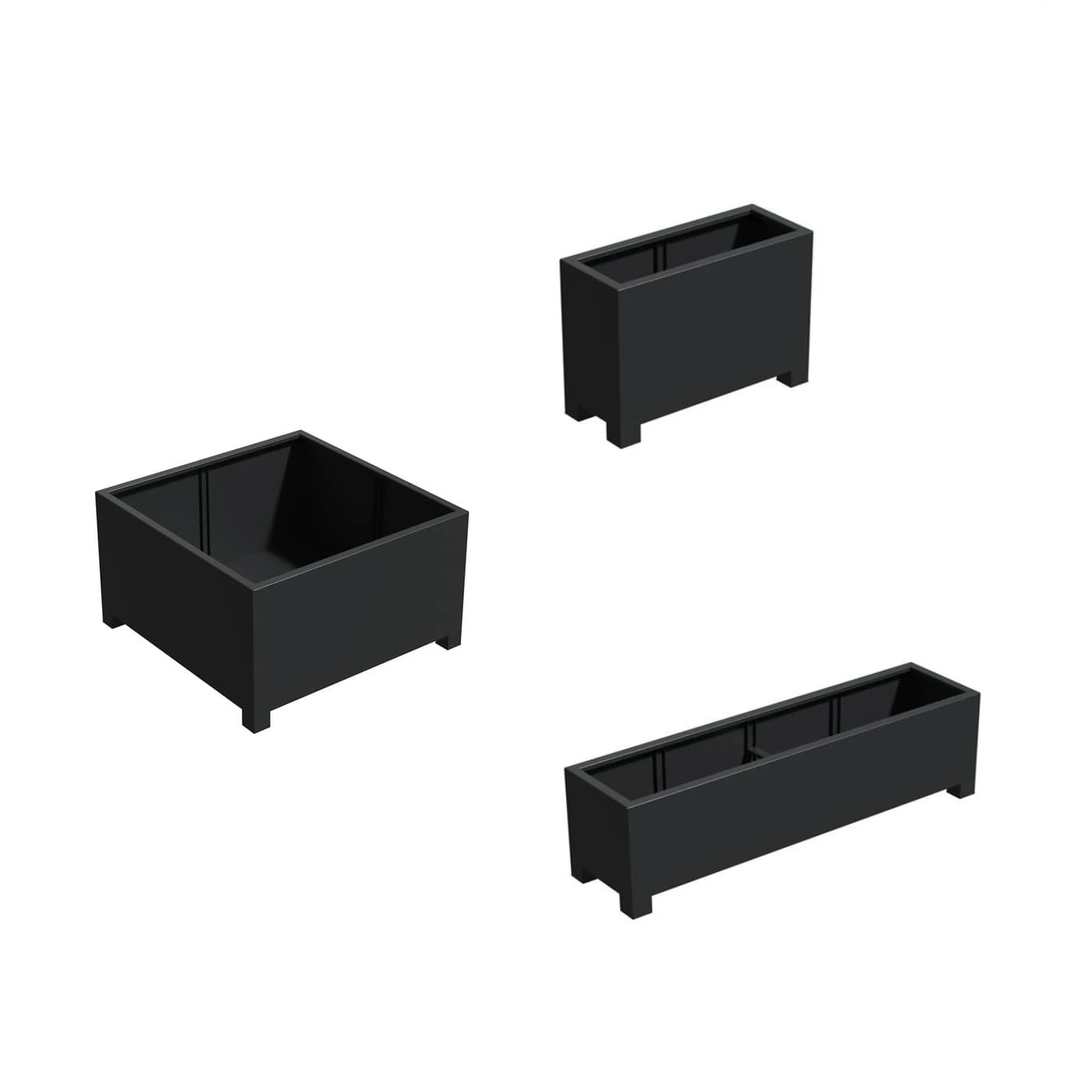 Die Blumenkästen CARREZ mit Füßen mit eckigem Grundriss sind in verschiedenen Größen und RAL-Farbtönen bei Kaminprofi24 erhältlich. Die unterschiedlichen Ausführungen lassen sich ideal miteinander kombinieren und bilden einen aufsehenerregenden Blickfang innerhalb Ihrer Garten-, Balkon- oder Terrassengestaltung, ganz gleich, ob Sie die selbe Größe oder Blumenkästen unterschiedlicher Größen miteinander kombinieren um Ihre Pflanzen gekonnt in Szene zu setzen. Auf Anfrage sind die CARREZ Pflanzgefäße mit Pulverbeschichtung in jedem anderen gewünschten RAL-Farbton lieferbar.